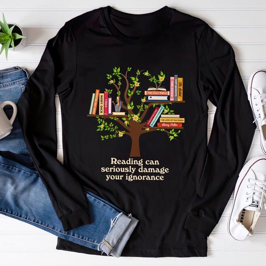 Custom Bookshelf Reading Can Seriously Damage Your Ignorance Book Lovers Gift LSBH80