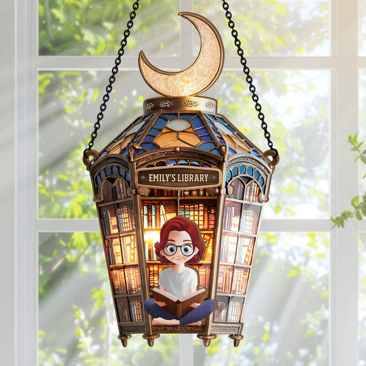 Crescent Moon Old Library - Personalized Window Hanging Suncatcher