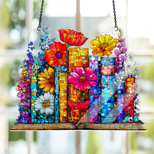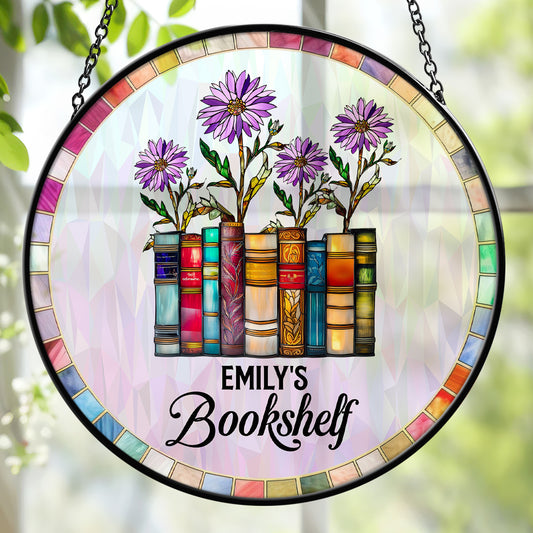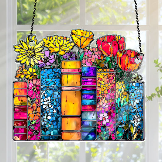 Flower Bookshelf - Personalized Stained Glass Window Hanging Suncatcher
