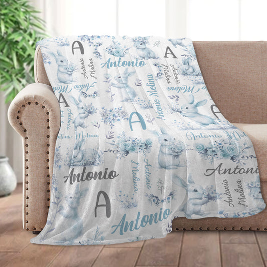 Floral Bunny Baby Shower Gift - Personalized Fleece Blanket