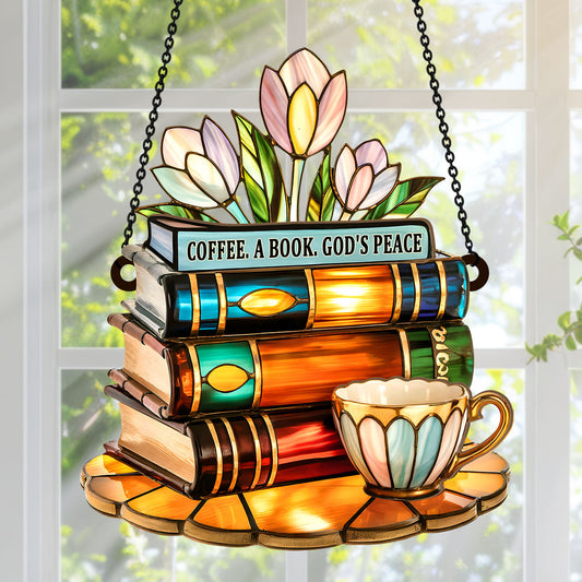 Gladiolus, Books, And Tea - Personalized Window Hanging Suncatcher