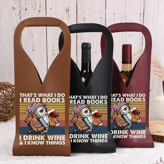 I Read Books I Drink Wine And I Know Things - Personalized Leather Wine Bag