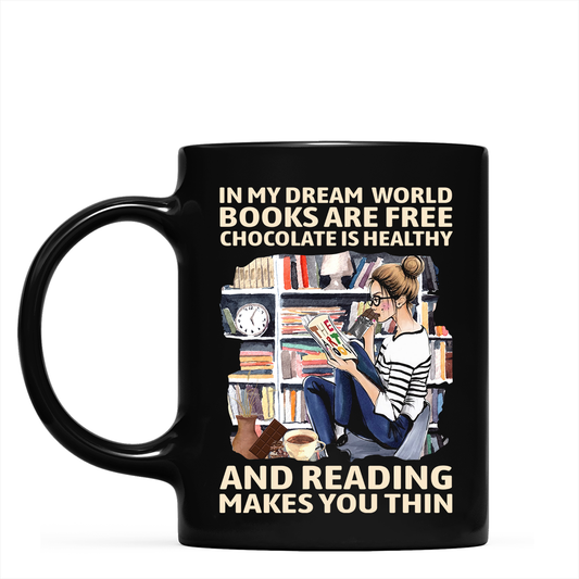 In My Dream World Books Are Free Chocolate Is Healthy And Reading Makes You Thin Book Lovers Gift MUGB50