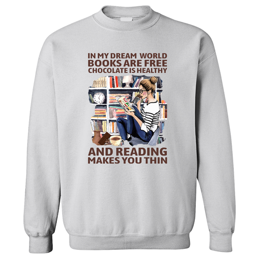 In My Dream World Books Are Free Chocolate Is Healthy And Reading Makes You Thin Book Lovers Gift SWW49