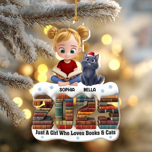 Just A Girl Who Loves Books & Cats Ver 2 - Personalized 1-Layer Acrylic Ornament