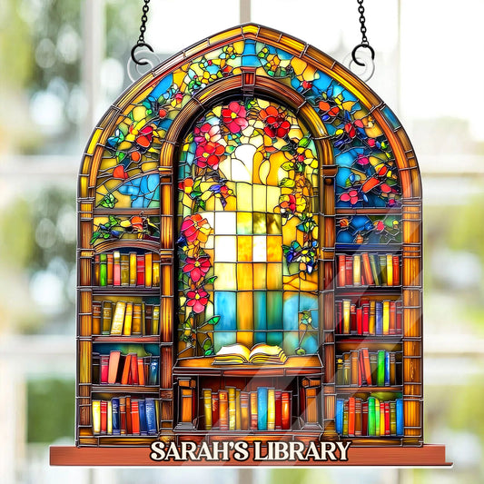Arched Library Shelf - Personalized Acrylic Suncatcher