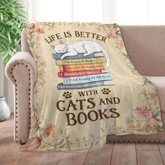 Life Is Better With Cats And Books - Personalized Fleece Blanket