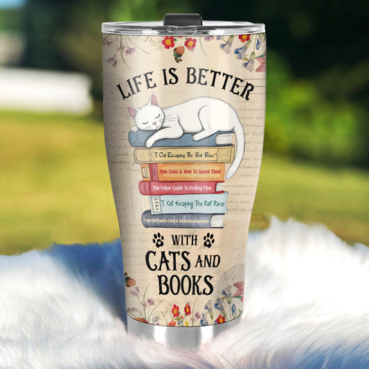 Life Is Better With Cats And Books - Personalized Stainless Steel Tumbler