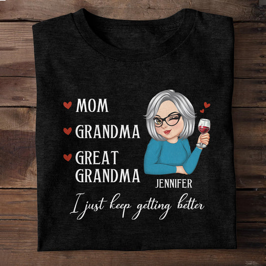 Mom Grandma Great Grandma I Just Keep Getting Better - Personalized Unisex T-shirt