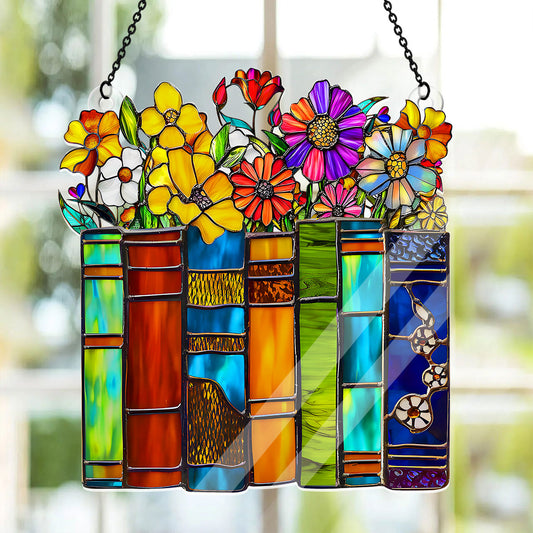 Black Cat On Old Library - Personalized Window Hanging Suncatcher