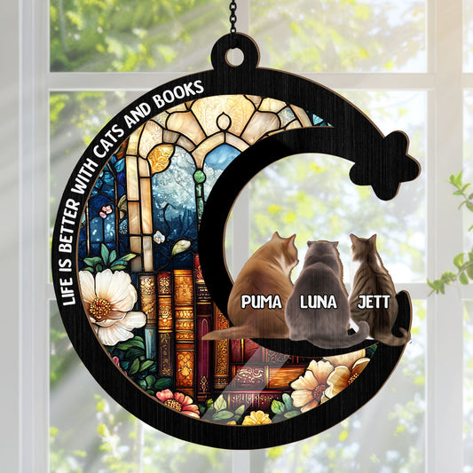 Bookish Moon Cats - Personalized Window Hanging Suncatcher