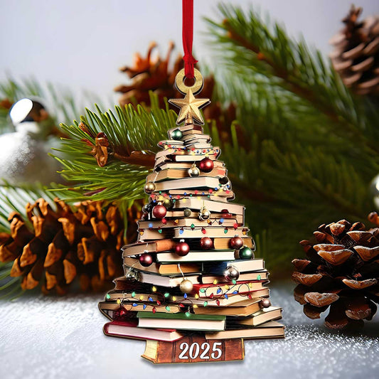 Book Tree Christmas - Custom Shape Wood Ornament Cutout & Print