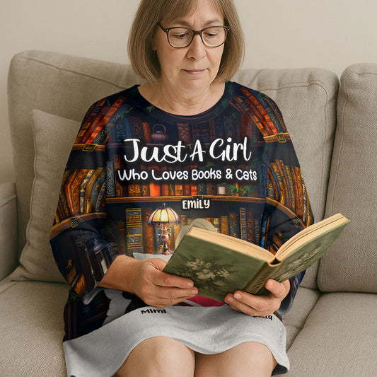 Just A Girl Who Loves Books & Cats - Personalized Sleep Tee