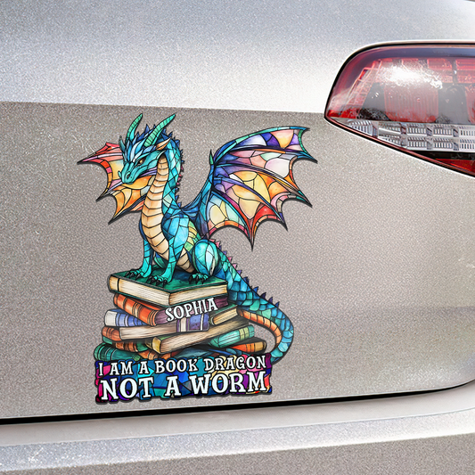 I'm Not A Bookworm I'm A Book Dragon - Personalized Car Magnet Custom Shape