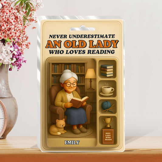 Never Underestimate An Old Lady Who Loves Reading - Personalized Custom Shaped Squared Acrylic Plaque
