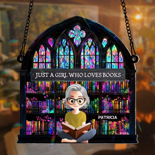 Just A Girl Who Loves Book - Personalized Holographic Window Hanging Suncatcher