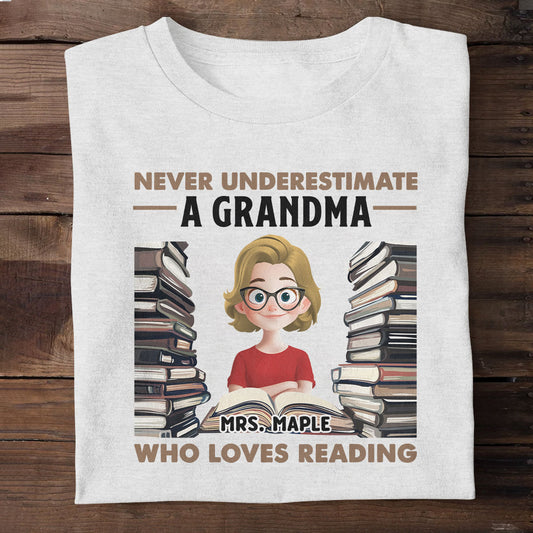 Never Underestimate A Mom Grandma Great Grandma Who Loves Reading - Personalized 2D Unisex T-shirt