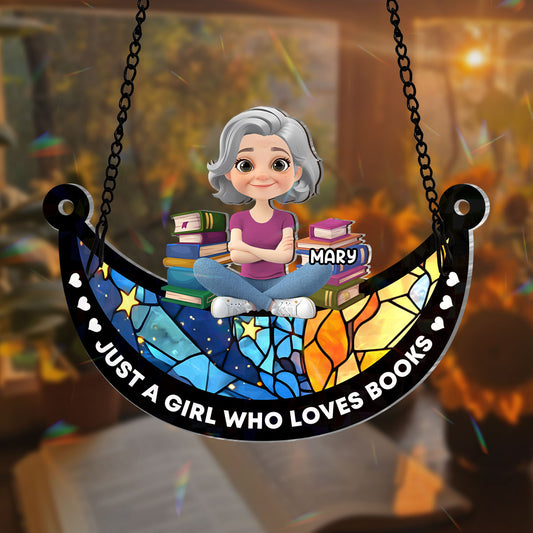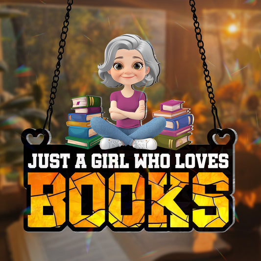 Just A Girl Who Loves Books - Personalized Holographic Window Hanging Suncatcher