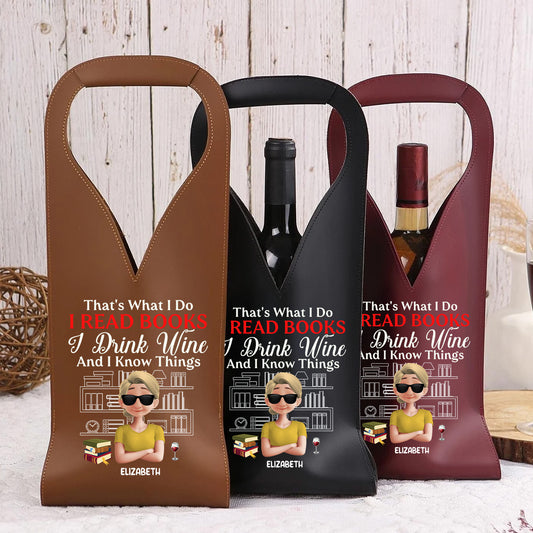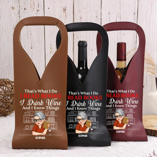 I Read Books I Drink Wine And I Know Things - Personalized Leather Wine Bag