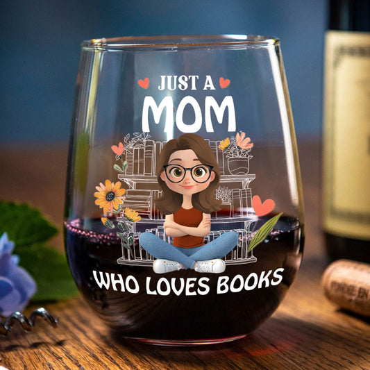 Just A Woman Who Loves Books - Personalized Stemless Wine Glass