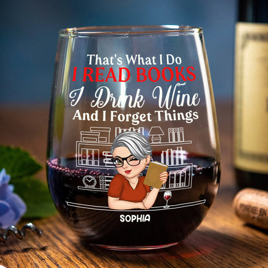 That's What I Do I Read Books I Drink Wine And I Forget Things - Personalized Stemless Wine Glass