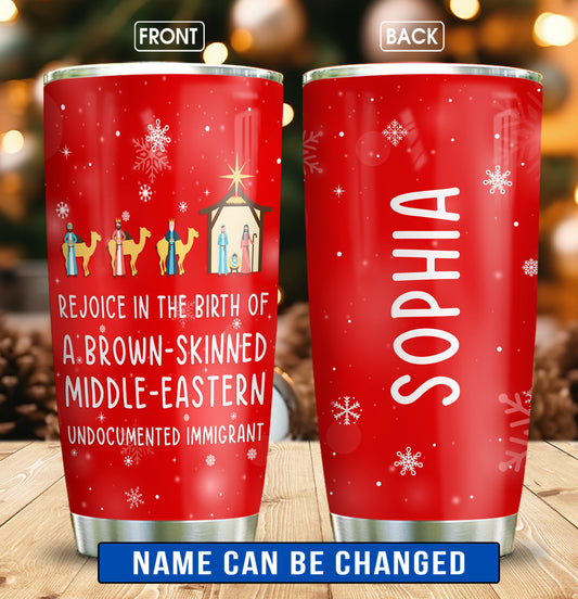 Rejoice In The Birth Of A Brown-Skinned Middle-Eastern Undocumented Immigrant Personalized Curved Tumbler 20oz Book Lovers Gift SCT305