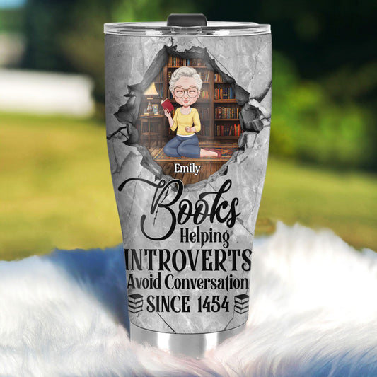 Books Helping Introverts Avoid Conversation - Personalized Stainless Steel Tumbler