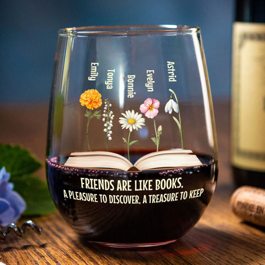 Birth Flower Grow An Old Friend Bestie - Personalized Stemless Wine Glass