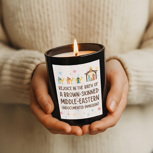 Rejoice In The Birth Of A Brown-Skinned Middle-Eastern Undocumented Immigrant - Personalized Scented Candle