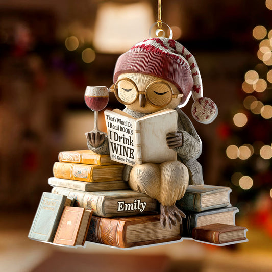 Funny Bookish Owl - Personalized 1-Layer Acrylic Ornament