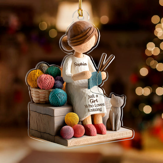 Just A Girl Who Loves Knitting - Personalized 1-Layer Acrylic Ornament