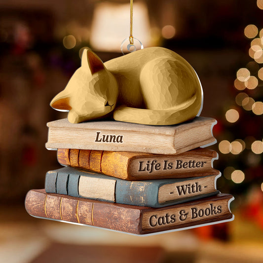 The Bookish Cat - Personalized 1-Layer Acrylic Ornament