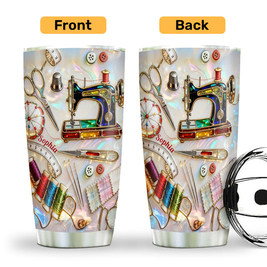 Love Sewing Stained Glass - Personalized Stainless Steel Tumbler