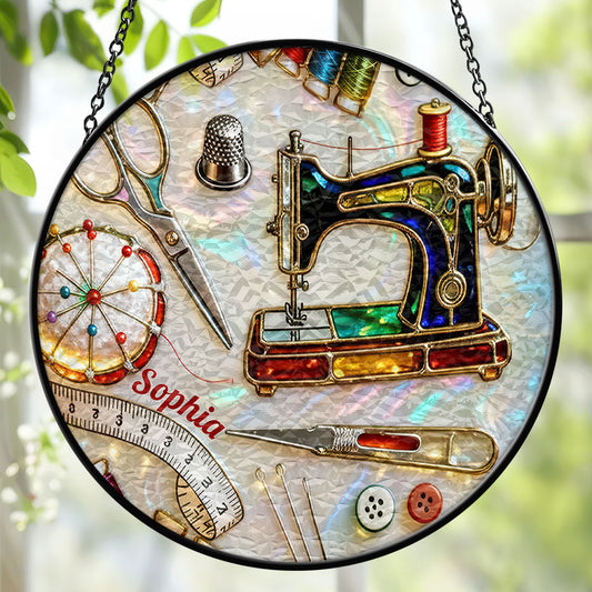 Love Sewing Stained Glass - Personalized Stained Glass Window Hanging Suncatcher