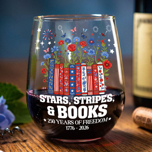 American 250th Book Lovers - Personalized Stemless Wine Glass