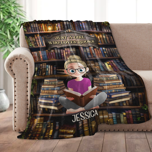 Just A Girl Who Loves Books - Personalized Fleece Blanket