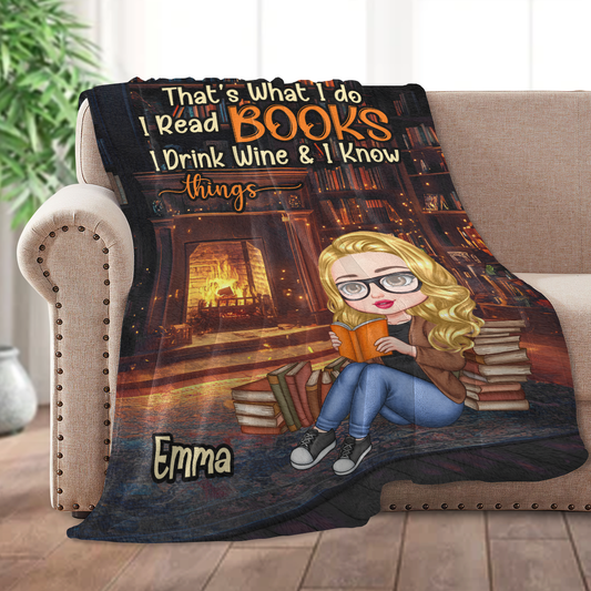 That's What I Do, I Read Books, I Drink Wine & I Know Things - Personalized Fleece Blanket