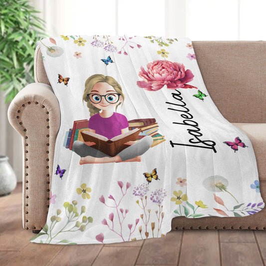 A Girl Who Loves Books Reading - Personalized Fleece Blanket