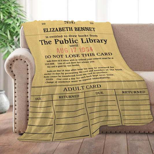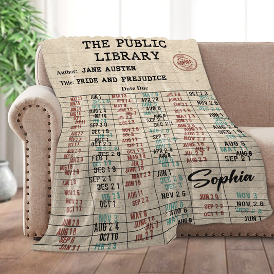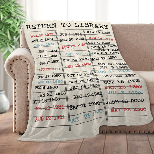 Nostalgic Library Card Due Date Stamp - Personalized Fleece Blanket
