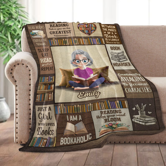 My Reading Blanket I Am A Bookaholic - Personalized Fleece Blanket