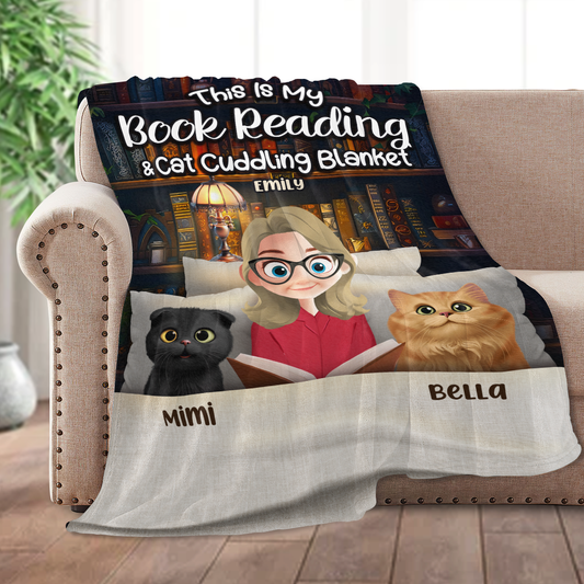 My Book Reading & Cat Cuddling Blanket - Personalized Fleece Blanket