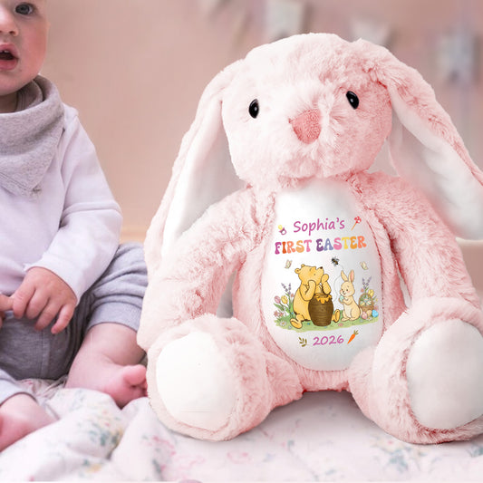 Baby's First Easter With Pooh - Personalized Stuffed Bunny