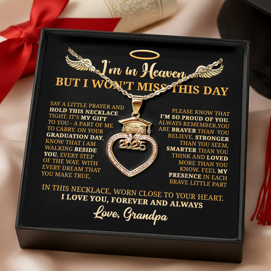 I’m In Heaven But I Won't Miss This Day 2026 - Personalized Grad Cap Heart Necklace With Box & Card 2026