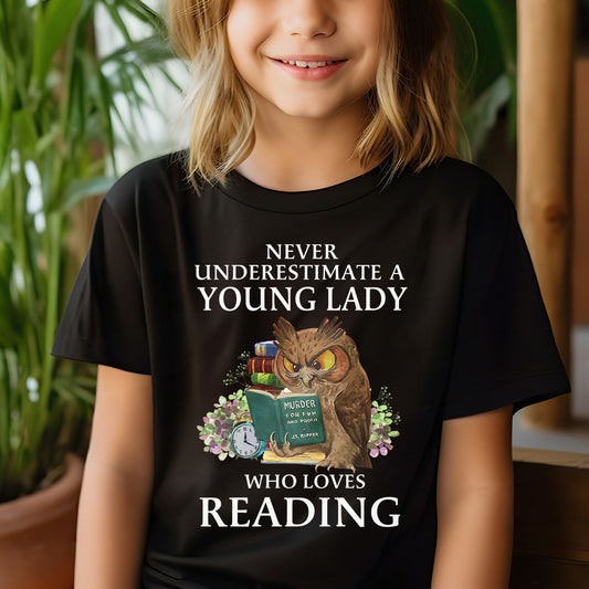 Never Underestimate A Young Lady Who Loves Reading - Personalized Kid T-Shirt