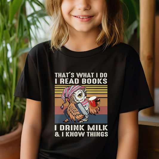That's What I Do I Read Books I Drink Milk & I Know Things - Personalized Kid T-Shirt