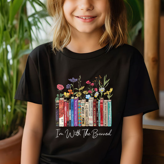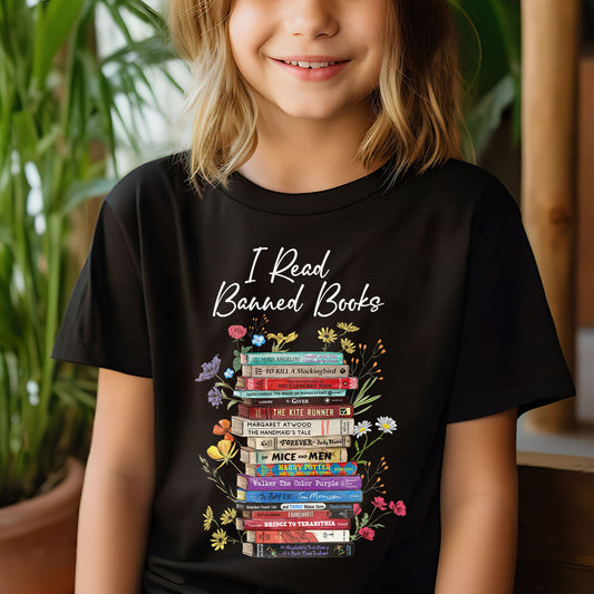 I Read Banned Books Flowers - Personalized Kid T-Shirt