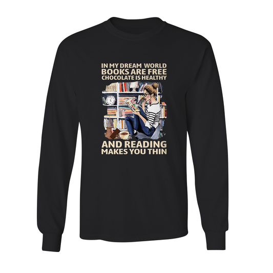 In My Dream World Book Are Free Chocolate Is Healthy And Reading Makes You Thin Book Lovers Gift LSB50