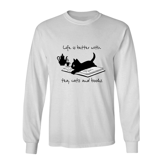 Life Is Better With Tea, Cats And Books Book Lovers Gift LSW35