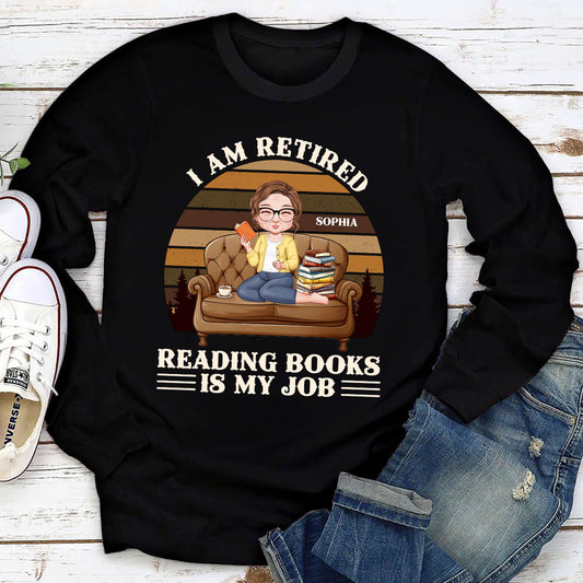 Retired Reading Books Is My Job - Personalized Long Sleeve Shirt