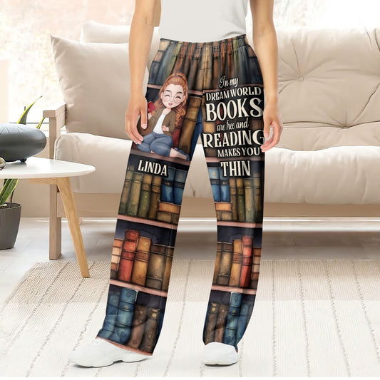 In My Dream World Books Are Free And Reading Makes You Thin - Personalized Lounge Pajama Pants